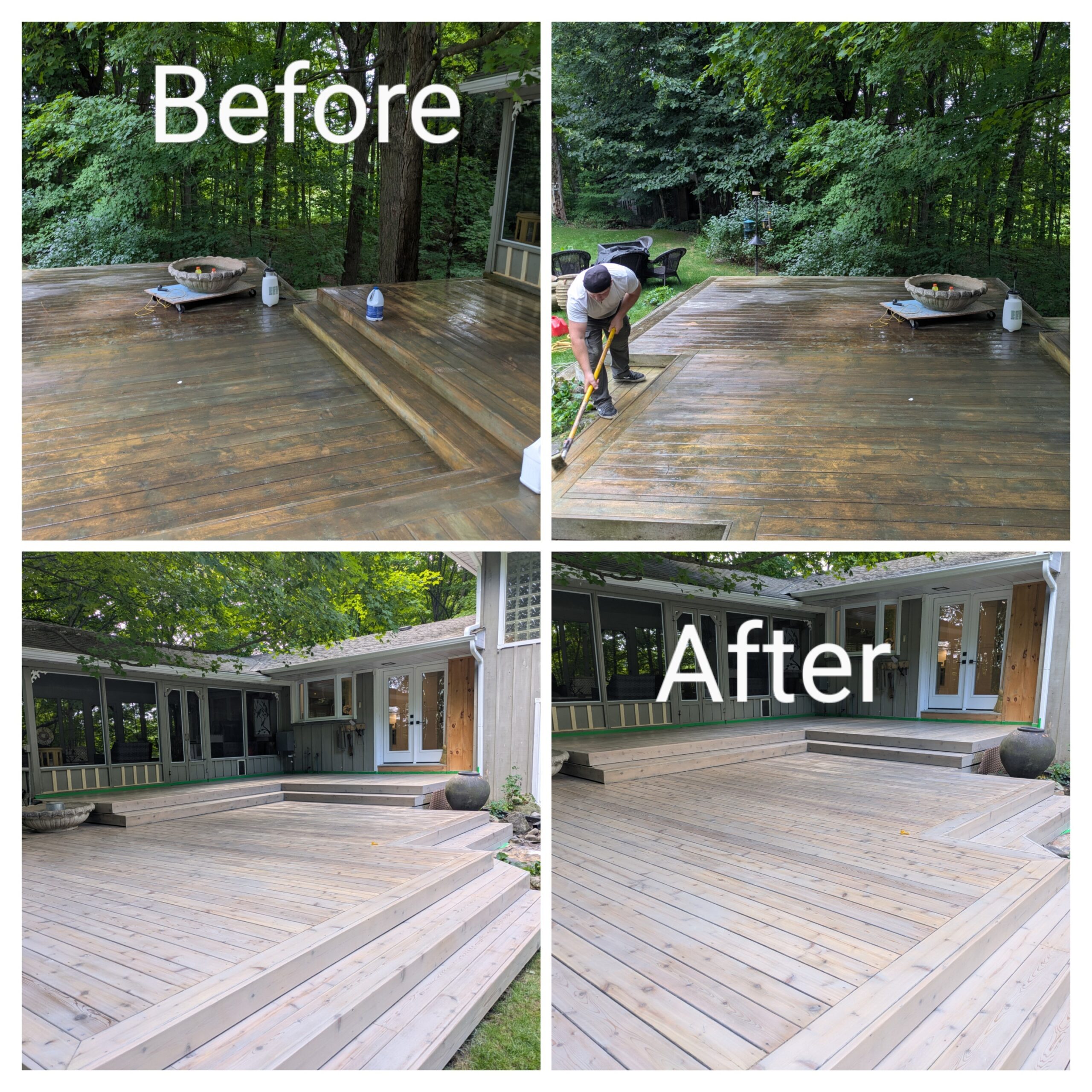 Surface Preparation: We carefully prepare the surfaces of your deck and fence, including cleaning, Power washing, Sanding, and repairing any damage as needed.